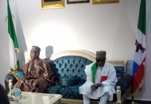 Governor Babagana Zulum of Borno of State and Governor Nyesom Wike of Rivers State during a courtesy visit in Maiduguri paid by the Presidential aspirant on the platform of the PDP.