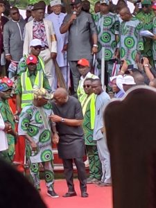 Governor Nyesom Wike arrives Isaac Boro Park, the venue of the 11th hour declaration.