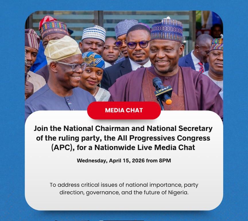 According to information released on the APC’s official X handle, “The National Chairman, @nentawe1, and National Secretary, @DrSRJ_, of the All Progressives Congress (APC) will host a nationwide live media chat to address critical issues of national importance, including party direction, governance, and the future of Nigeria.”